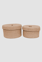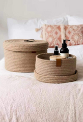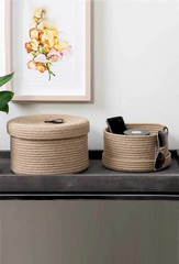 Enhance your home organization with this set of two storage baskets crafted from natural jute rope. Perfect for decluttering while adding a touch of rustic charm, these baskets offer versatile storage solutions for any room. Whether used for stashing away toys in the playroom, organizing linens in the bedroom, or keeping essentials tidy in the living room, their durable construction ensures both functionality and style. Embrace the beauty of natural materials with these woven baskets, designed to bring order and elegance to your living space effortlessly.